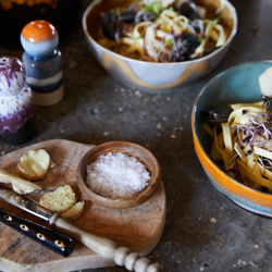 Serve your pasta dish in a unique pasta bowl. Thanks to the retro glazes you've come to expect from 70s ceramics, your table setting will stand out from the crowd. Both the inside and outside of the pasta bowls are glazed to make your food really pop.